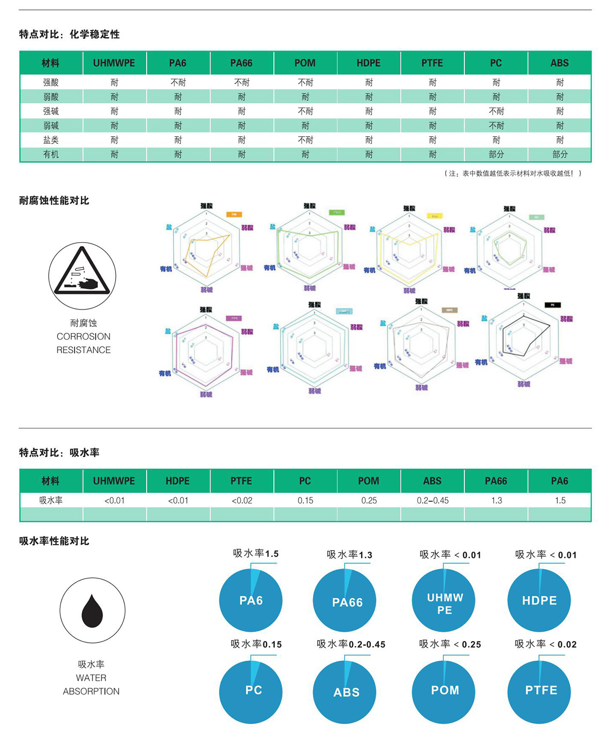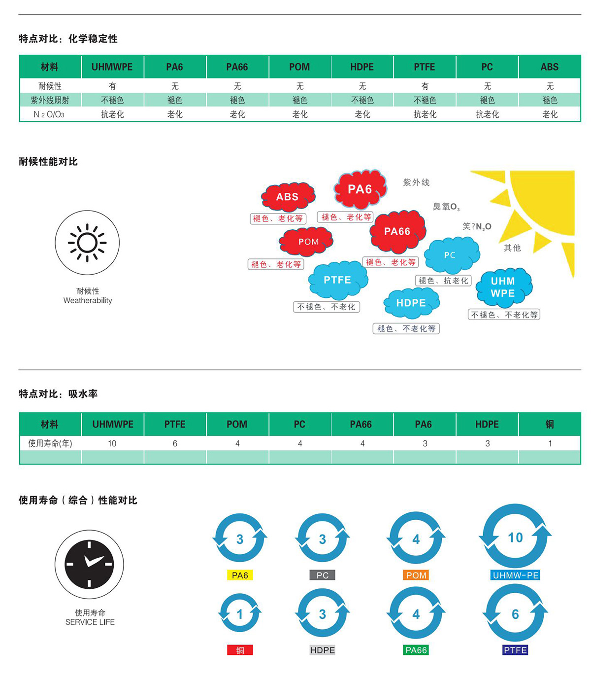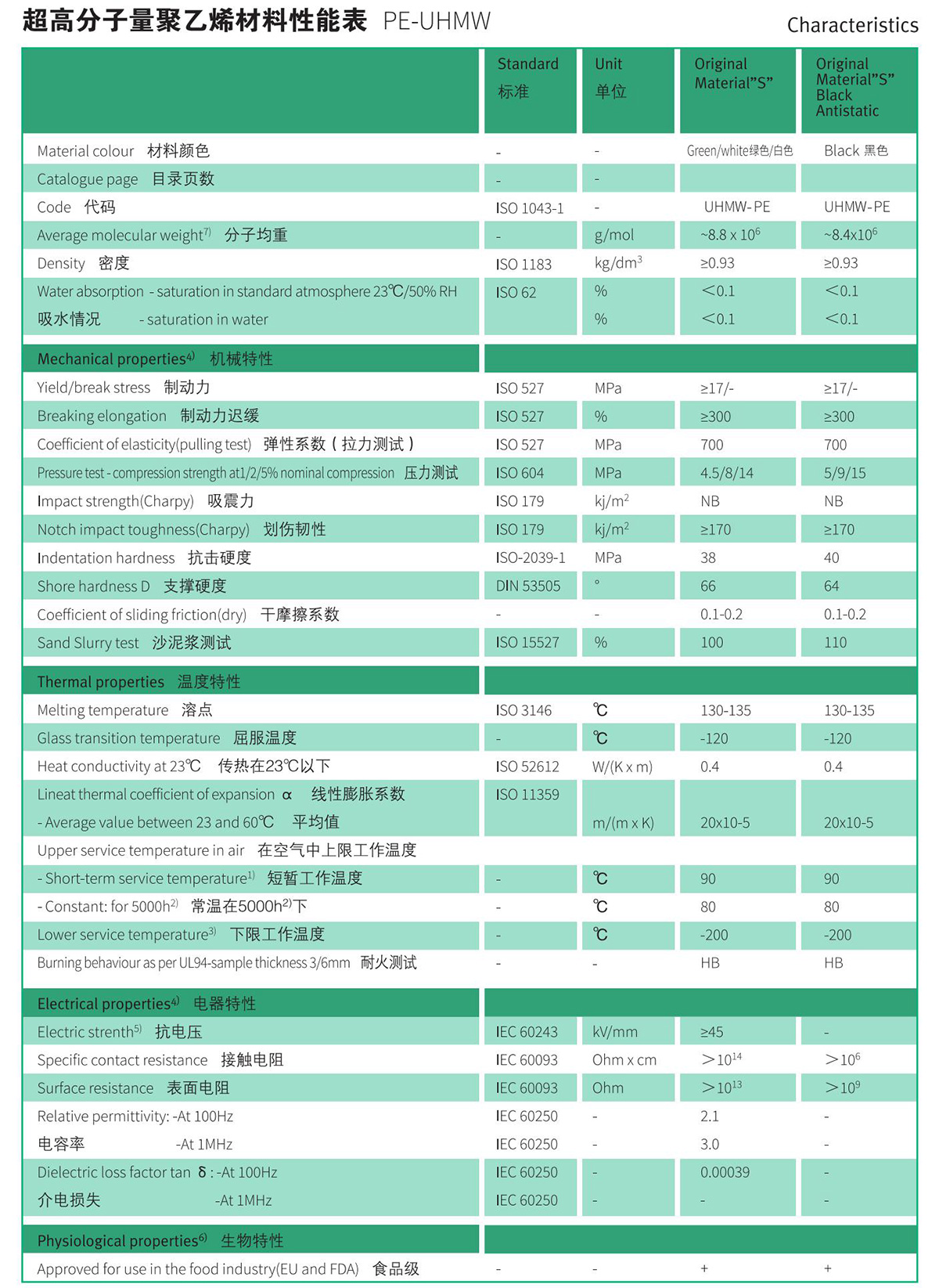 由於以上優異的綜合使用性能,UHMW-PE被歐美國家稱為"令人驚異的塑料"而受到重視,在許多行業獲得廣泛的應用。