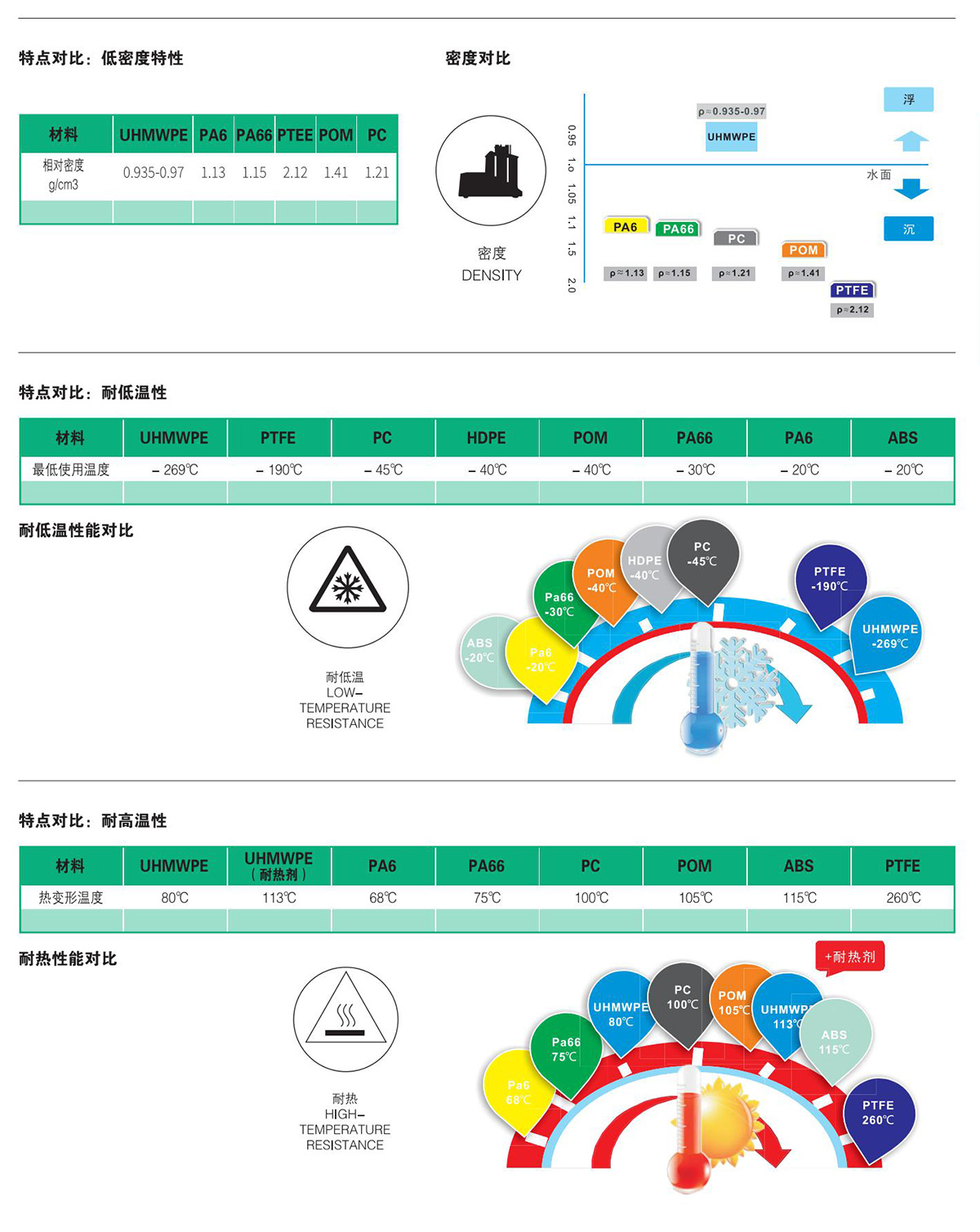 8)密度在所有工程塑料中最小,比聚四氟乙烯輕56%,比聚碳酸酯輕22%;密度為鋼的1/8,等等。