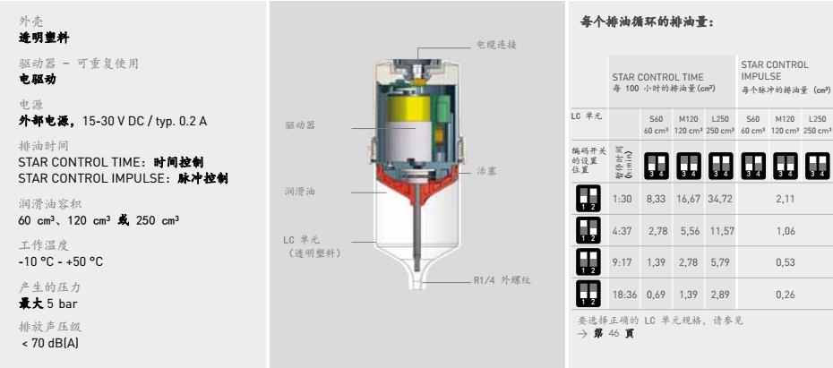 -驅動器可重複使用 -通過少量多次傳送實現可控的持續潤滑 -透明外殼實現可視的液麵位置監測 |